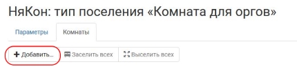 Теперь в блоке меню «Финансы/АХЧ» появился пункт «Поселение». В нем можно настроить типы размещения и добавить конкретное число помещений («комнат») для каждого из них.