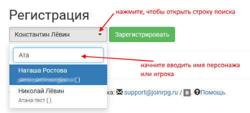 Для регистрации доступны только персонажи, заявка на которых принята. Непринятые заявки и персонажи без игрока в список не попадают.
