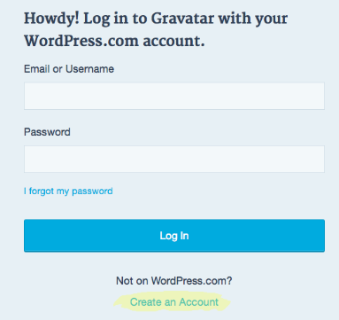 Зайти на gravatar.com (кнопка “Войти” в правом верхнем углу окна). На появившейся странице выбрать “create a new account” внизу страницы.